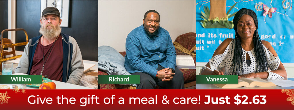Your donation today gives men, women and families currently experiencing homelessness a life changing Christmas gift it starts with a hot, nourishing meal for just $2.63!